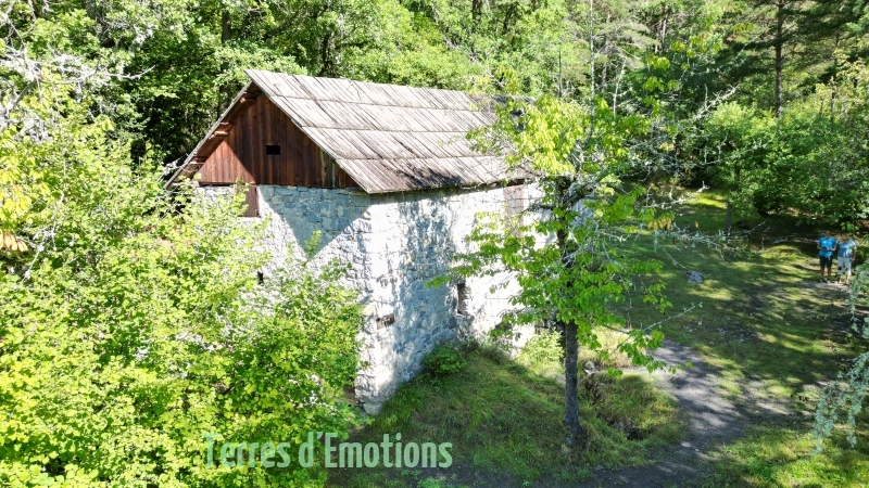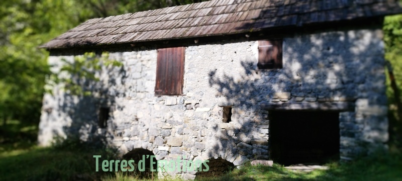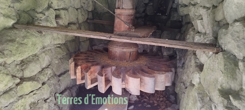 Le sentier commence en descente pour rejoindre le moulin de la barlatte. Moulin autrefois utilisé pour fabriquer la farine. Un système ingénieux de prise d’eau dans la barlatte amenait l’eau par un canal, puis descendait avec force dans un conduit pour faire tourner une meule.