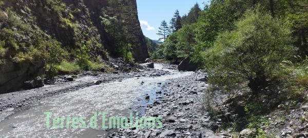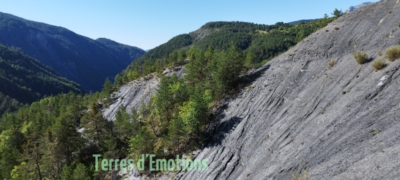 Les différents orages de presque tous les jours dans la vallée du var arrachent la roches friable aux alentours Encore quelques montées et nous rejoignons la route qui nous mène à Chateaneuf d’Entraunes.