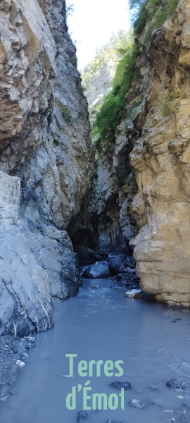 Ce moulin a été restauré. Le sentier remonte pour rejoindre un autre canal beaucoup plus ancien qui prenait l’eau à la sortie des gorges. Ce canal a été détruit par des crues successives. Le déjeuner est pris sur les bords de rive de la rivière. Ainsi qu’une petite baignade improvisée dans les eaux tumultueuses et limoneuses de la rivière.