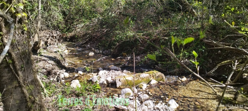 Puis descente dans le vallon de bouyon, où l’eau est absente du sol (malheureusement déjà tôt dans la saison). Cette eau finit par resurgir quelques centaines de mètres plus bas avant d’être retenue par une écluse.
