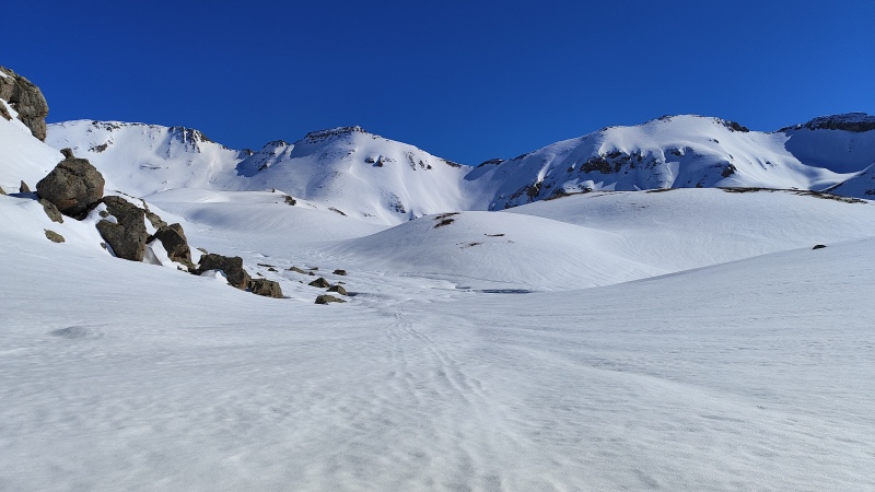 Une montée beaucoup plus pentues au début côté Var que côté Tinée. Le départ se fait relativement tard, le parcours est long , mais la pente du début fatigue les organisme . Heureusement qu’au bout du 1er tiers du parcours la pente s’adoucie, le vallon s’élargit pour laisser découvrir le col de Gialorgues et les sommets alentours.