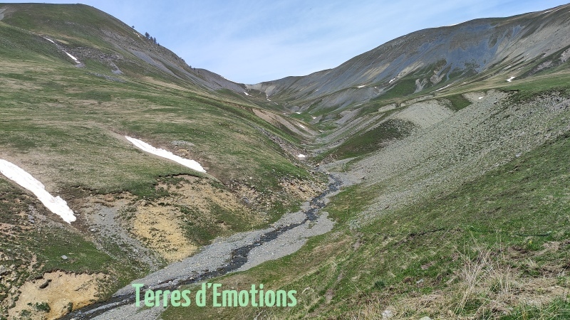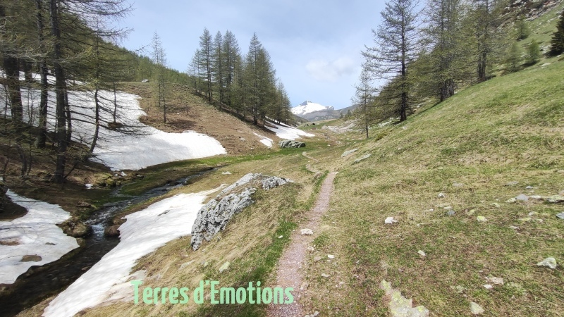 Le sentier monte rapidement au plateau de longon en passant par la magnifique cascade aux eaux tumultueuses dont la fonte en est responsable. La rivière à sec l’été déborde par endroit. Le plateau est sous les eaux.