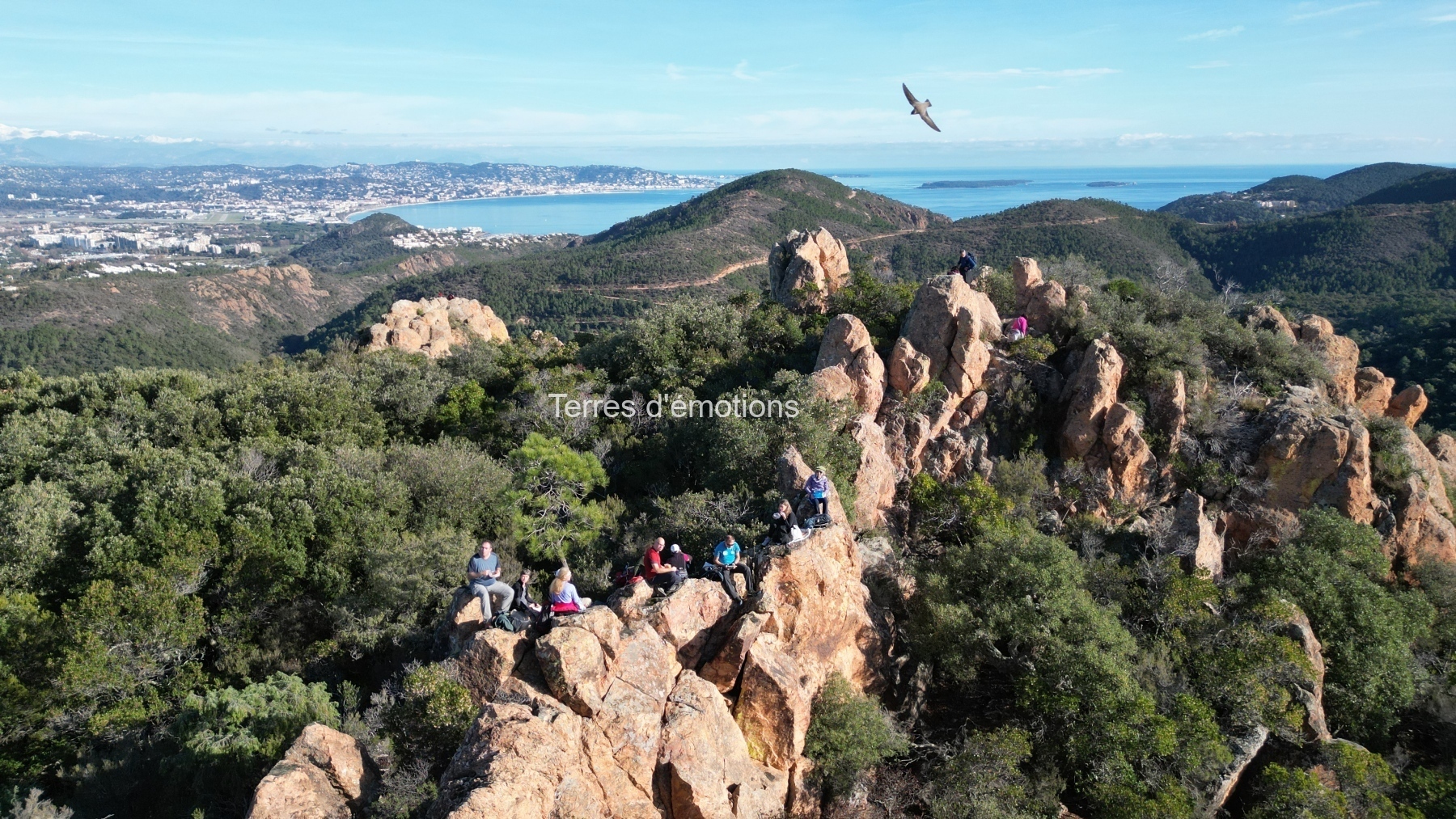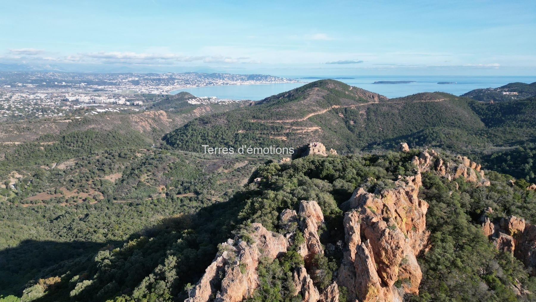 Au cœur du massif de l’Estérel, ce matin avait le parfum des récits anciens. Le sentier, rouge comme une braise assoupie, nous a guidés vers la mystérieuse grotte de l’Œuf de Bouc, repli secret sculpté par le temps, où l’on imagine encore l’ombre agile de Gaspard de Besse, le brigand au cœur léger, chevalier des chemins, qui connaissait ces roches comme on connaît les replis de sa propre vie.
