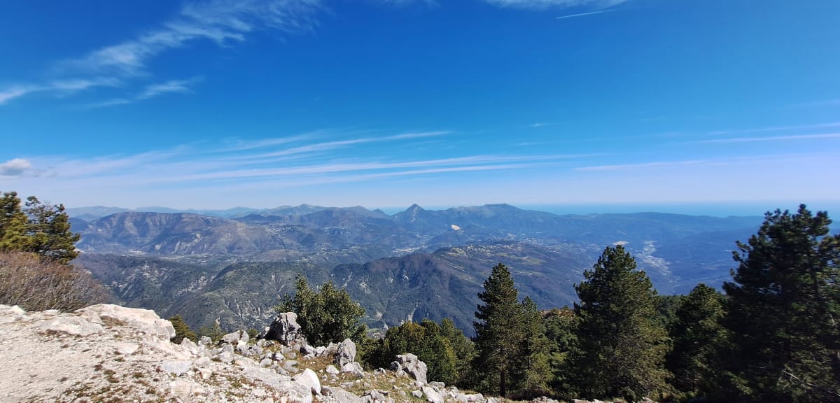 Depuis Levens, le sentier s’élève doucement, s’enroulant dans l’ombre fraîche des pins avant de s’ouvrir sur la lumière. À chaque pas, la vallée du Var se dévoile un peu plus bas, profonde et minérale, tandis que les collines niçoises ondulent à l’horizon. Là-haut, au sommet du Mont Férion, le regard embrasse le monde : la mer devinée dans la brume, les villages accrochés aux pentes, et le vent qui raconte l’arrière-pays. C’est une randonnée comme une confidence, où la montagne murmure à ceux qui prennent le temps d’écouter.